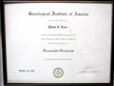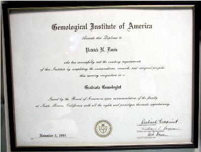 Graduate Gemologist, GG Diploma awarded to Patrick Davis November 2, 1995